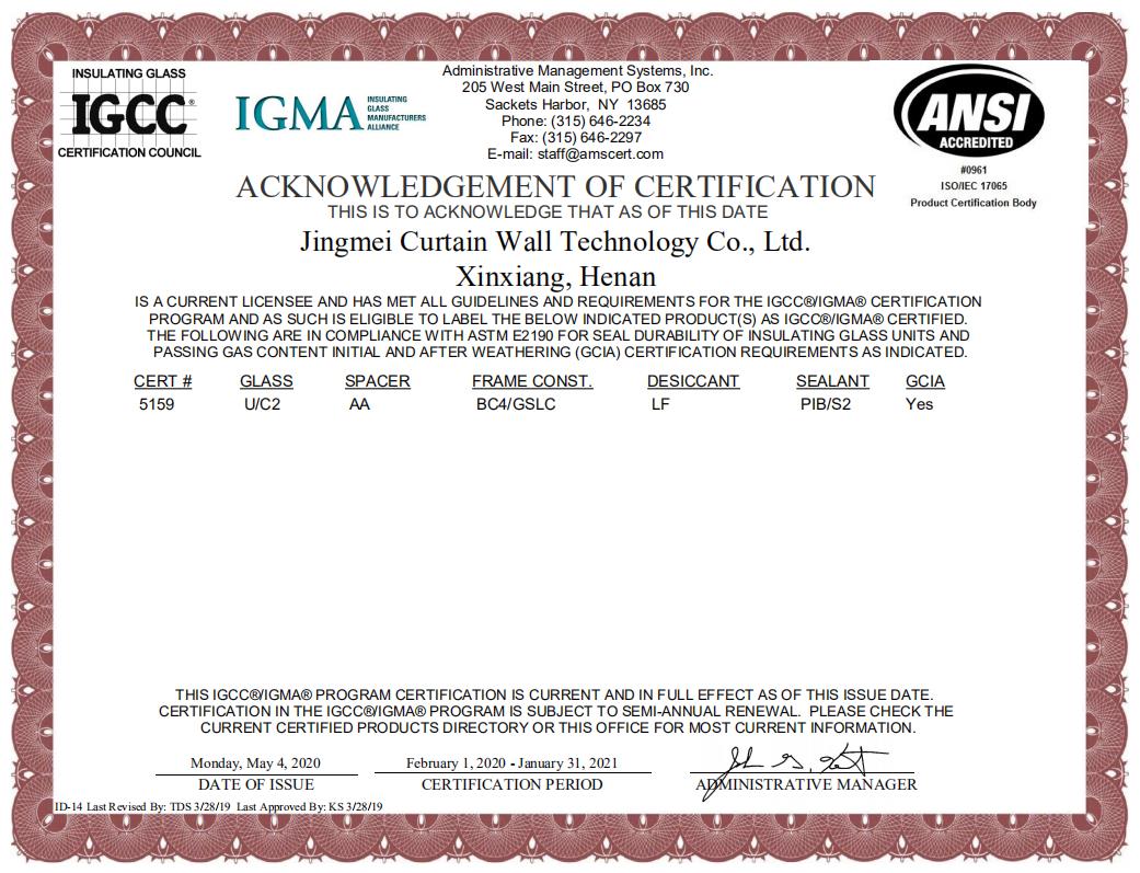 5月8日,半岛(中国)一站式服务平台下属的静美幕墙技术有限公司中空玻璃产品顺利通过了美国IGCC/IGMA实验室样品认证检测,荣获IGCC/IGMA认证证书,成为目前河南省唯一一家通过美国I…
