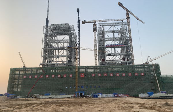 华能正宁调峰煤电项目1#、2#主厂房A列顺利到顶