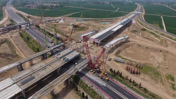 兰原跨大广高速公路潘店互通立交钢箱梁桥顺利吊装